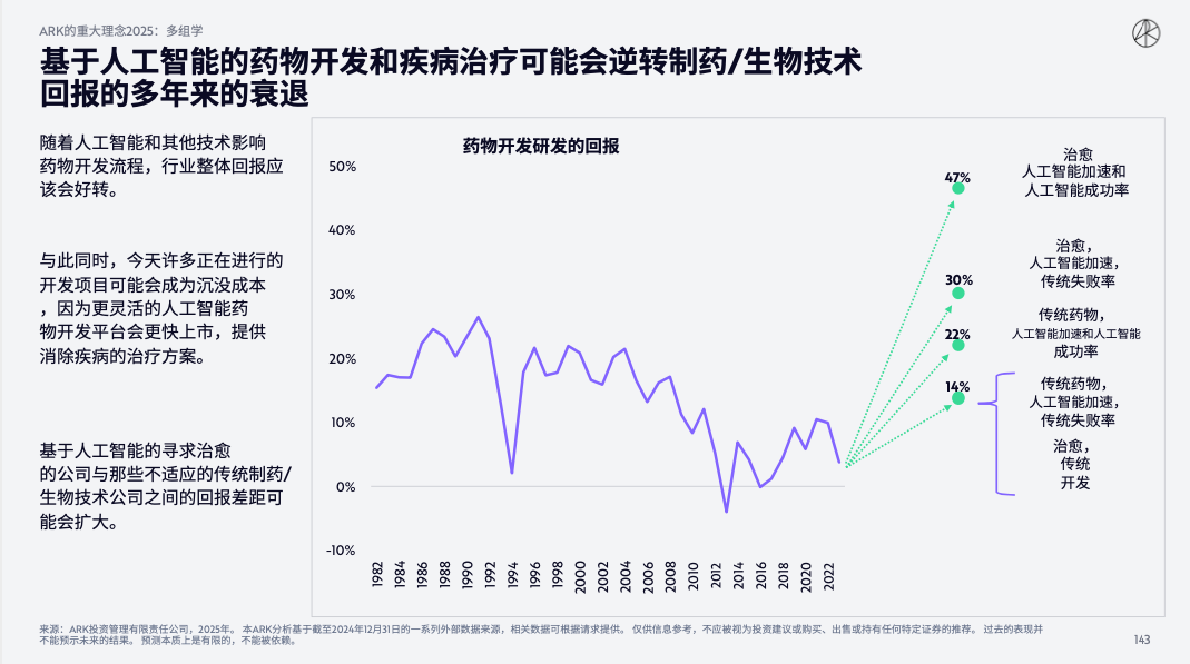 2、AI将使得药物开发成本降低4倍,并将研发投入回报提高5倍,商业化速度提高1.6倍;
