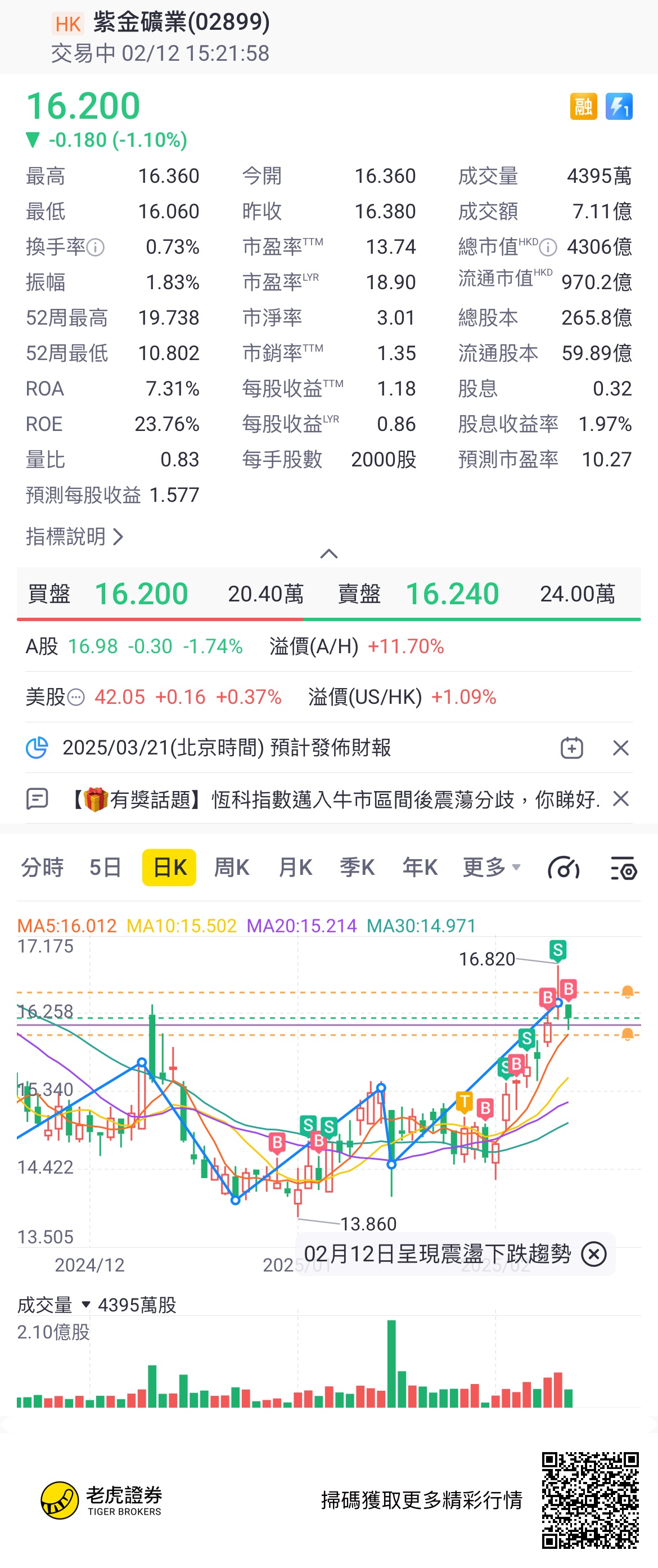 $紫金矿业(02899)$