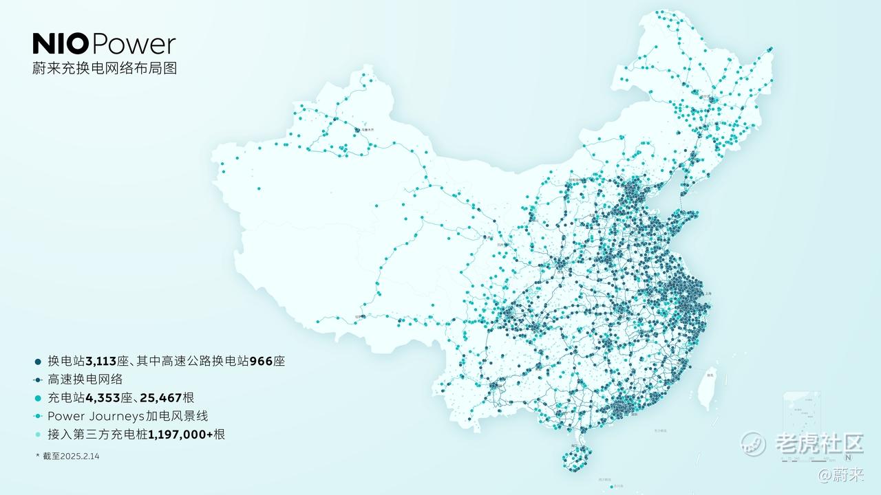 蔚来能源持续提速和加密充电桩和换电站网络建设。截至2月14日,蔚来能源已在全国建设3,113座换电站、25,467根充电桩,换电站、充电桩建成数量领先行业,建成9纵9横14大城市群高速换电网络,连通全国超700个城市,换电站覆盖全国近900个县级行政区,全国近50%的县级行政区建有蔚来能源充电桩,覆盖近1,300个县级行政区。蔚来能源充电桩日均可用率超99%,向全行业所有新能源用户开放,为全行业用户提供便捷、高效的加电体验,让油车能去的地方,电车都能去,用户去哪儿都方便。