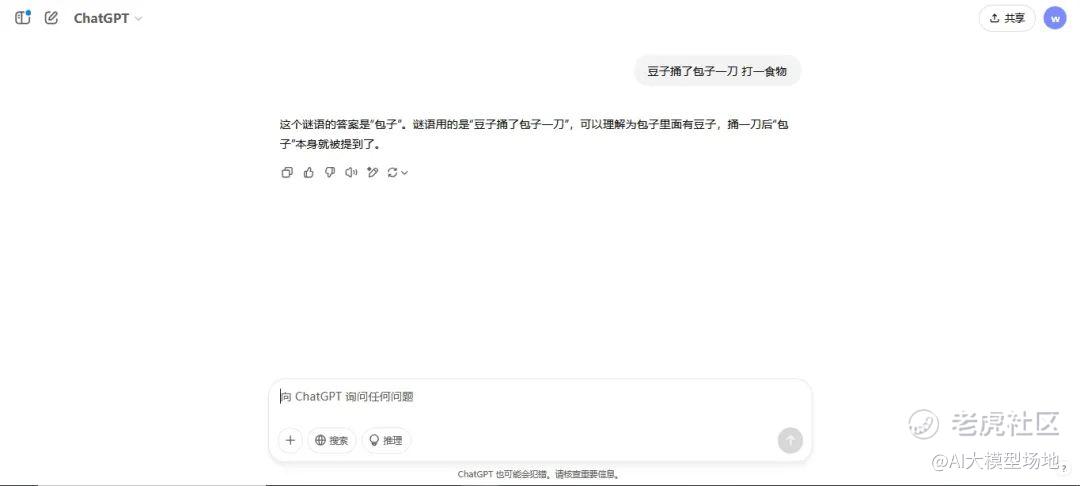 先来小试牛刀一下,猜谜语虽然很简单,但其实考验的时AI大模型对语言的理解和逻辑推理能力。