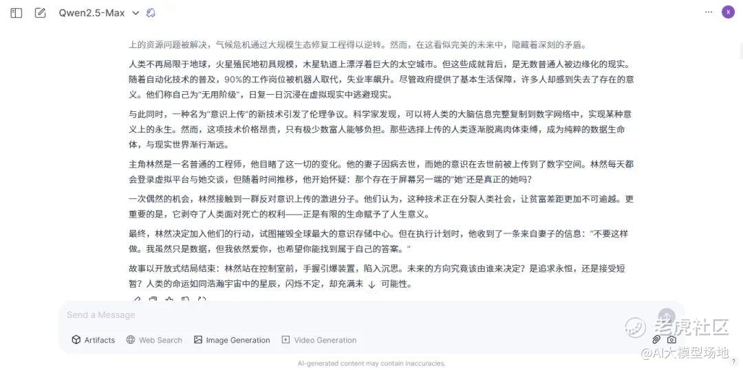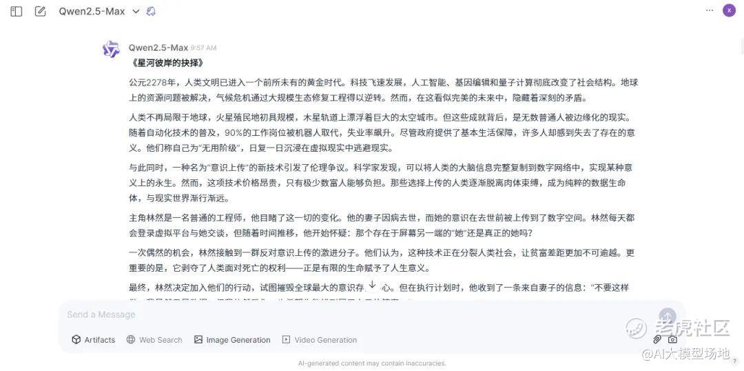 同样,文本创作能力是大模型的“艺术细胞”所在。我们让三位选手写一篇科幻小说,看看大家深度如何。