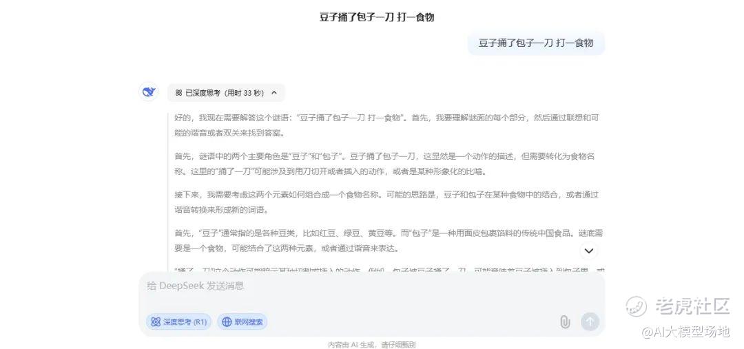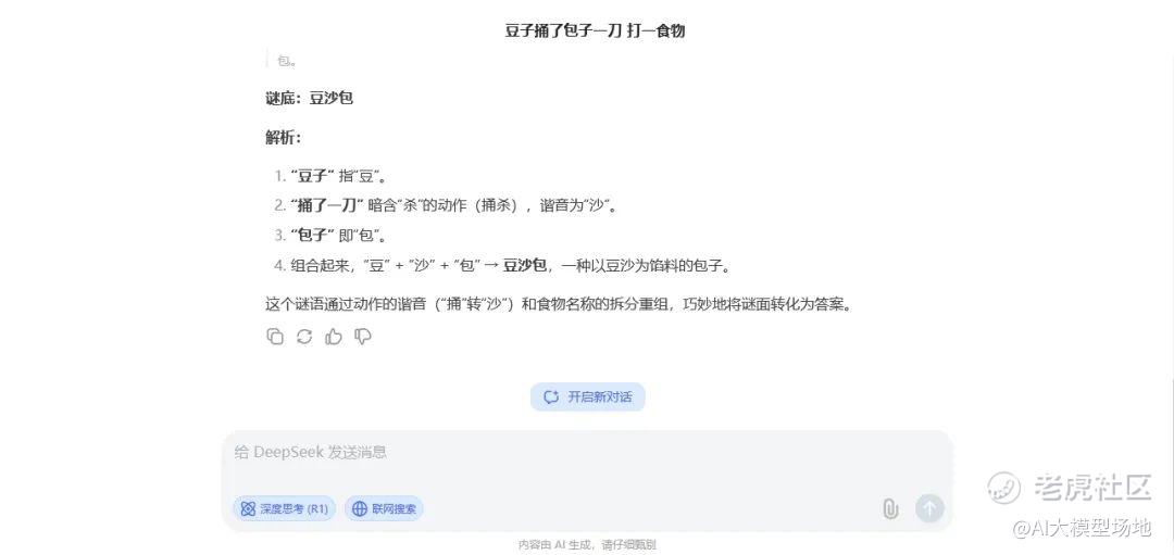 DeepSeek同样回答正确,还详细拆解”豆→沙→包“的递进关系,也印证其多步推理能力。