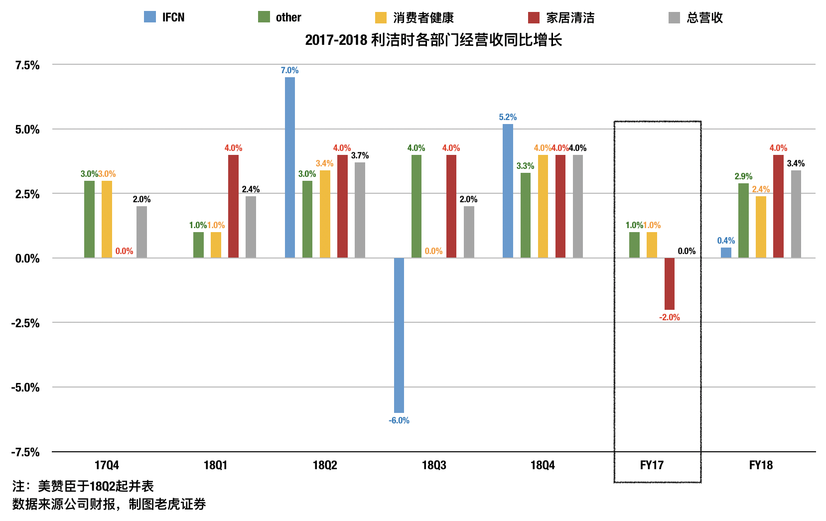 如图,美赞臣尚未“消化”完毕、战略重组影响运营效率、家居清洁业绩持续下滑、荷兰工厂生产问题对IFCN部门造成冲击等,这些最终导致了17-18年利洁时业绩糟糕的表现。