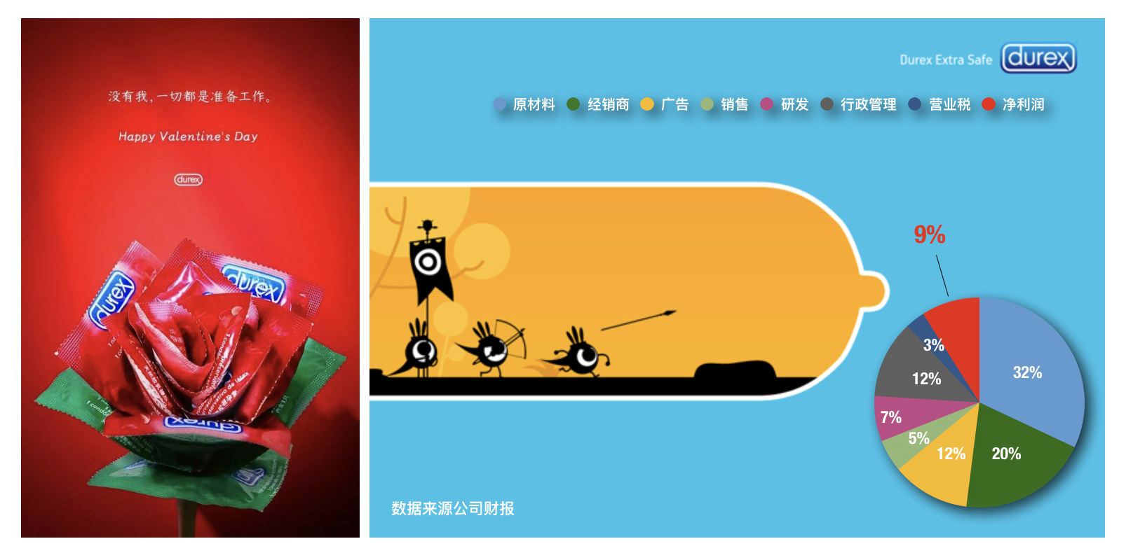 如上图,作为全球最成功的消费品牌之一,杜蕾斯的盈利能力同样不容轻视——对于一般走“薄利多销”路线的快消品来说,9%已经是个非常漂亮的净利率。