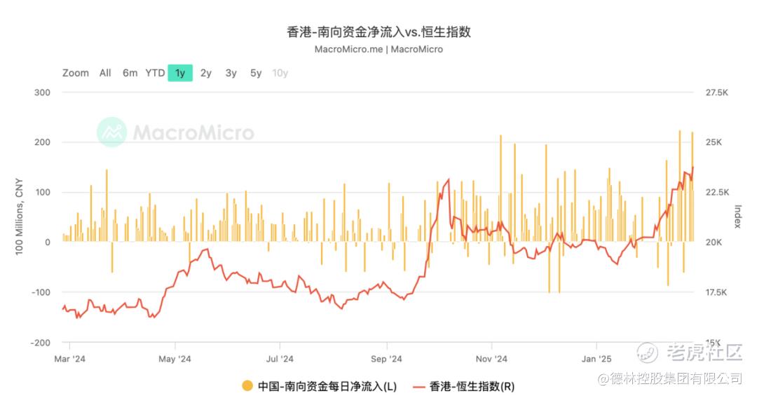 在此不禁自夸一下德林的前瞻性。2024年港股不断下行,尚未确立上涨趋势时,德林控股董事局主席陈宁迪就多次撰写文章明确告诉大家港股的投资价值。2024年8月18日发表《港股通门槛见底、价值股闪现》,9月21日指导德林新经济研究院发表《掘金港股——美国降息之后》。2025年1月16日发表《外储投香港,开启新篇章》明确告诉大家当下是投资香港的好机会。2月11日再次撰文《春天来了,上涨还会远吗?》。今天就不再赘述之前的观点和逻辑了,市场已经从最浅显的资金面、政策面验证德林曾经的预判。