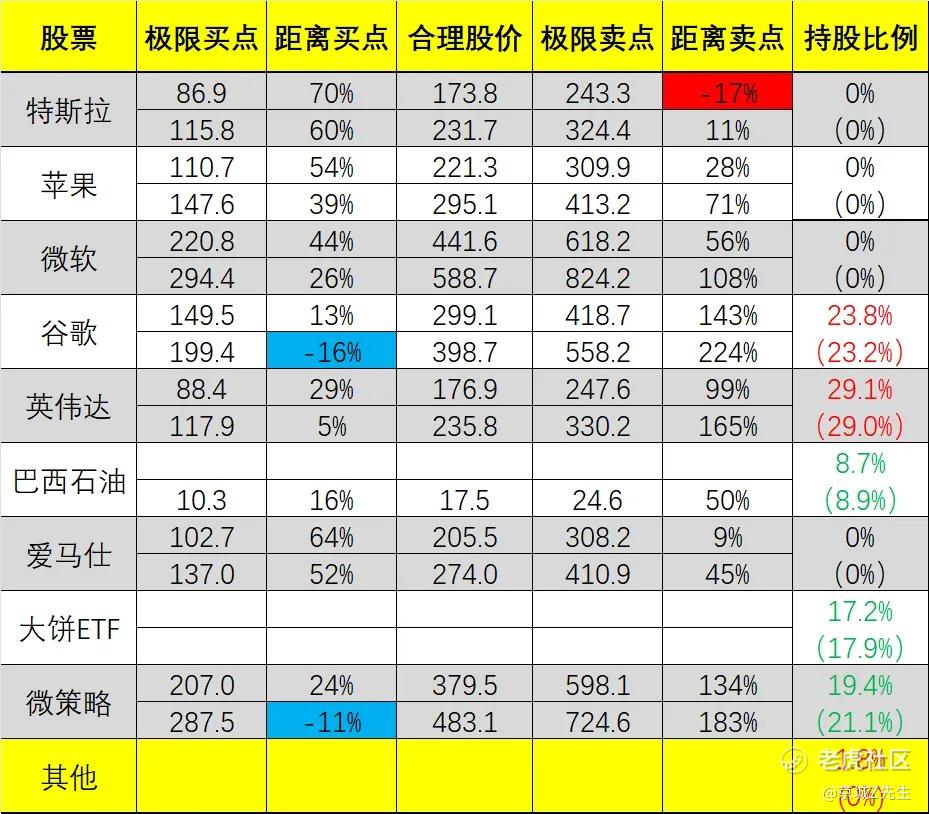 谷歌 23.8%,英伟达 29.1%,巴西石油 8.7%,大饼ETF 17.2%,微策略 19.4%, 其他/现金 1.8%。