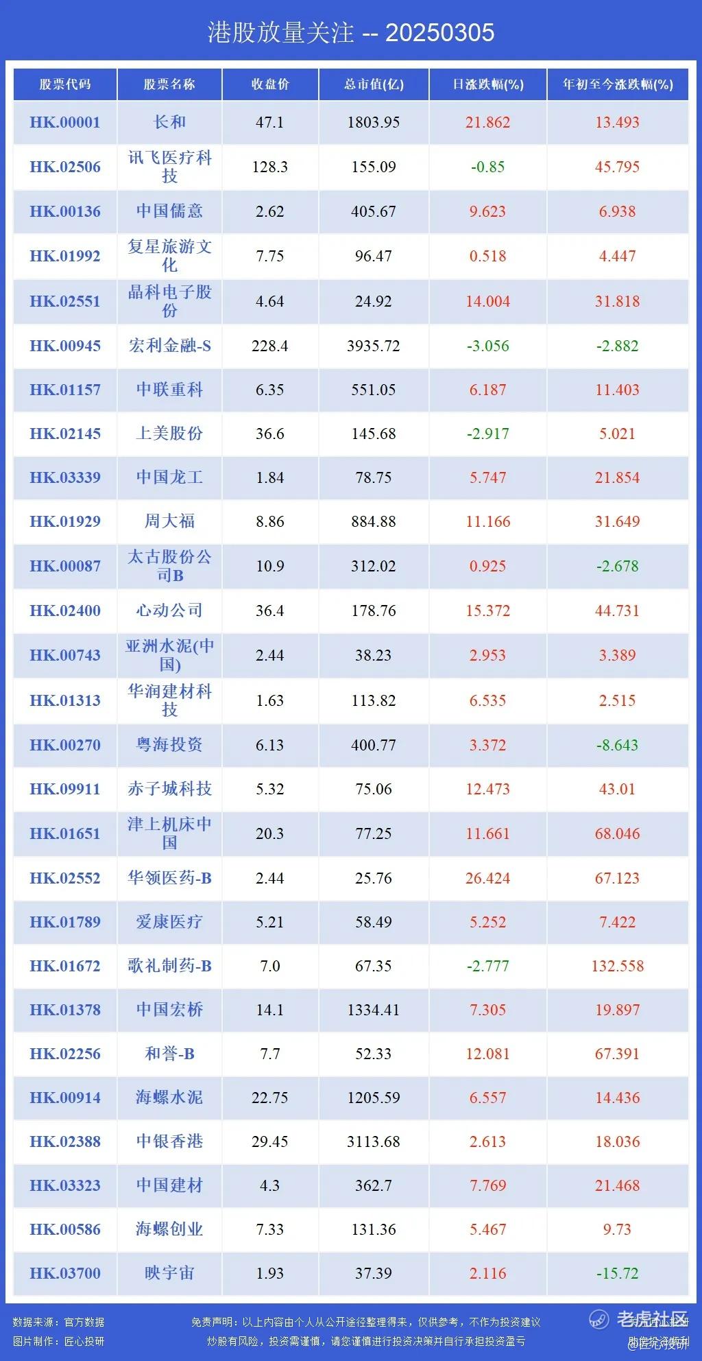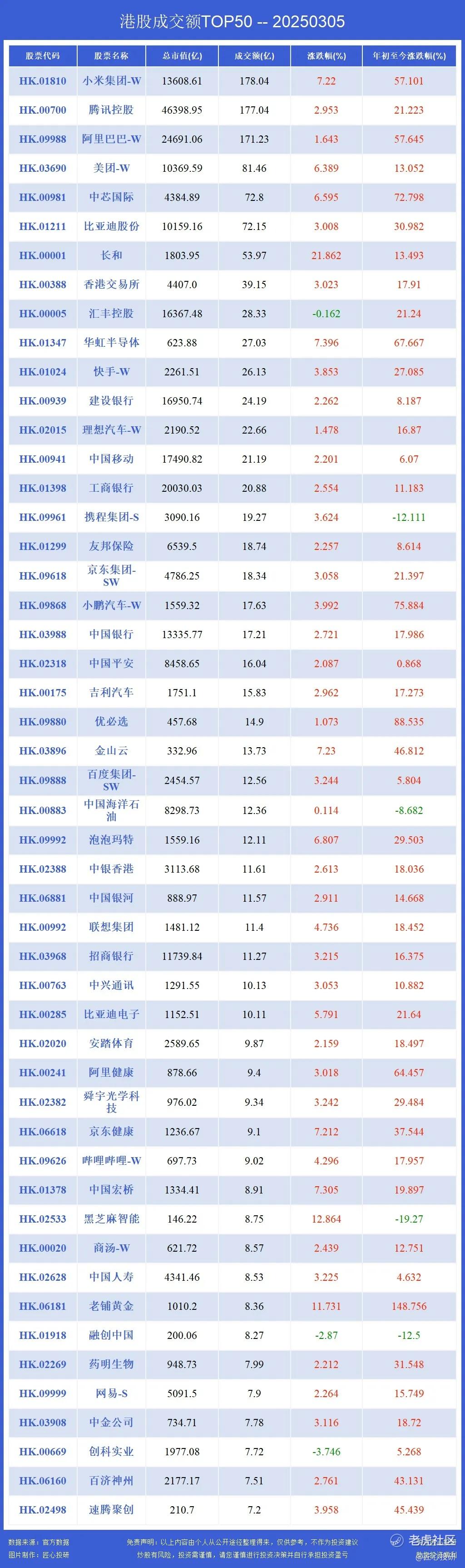00001长和,01378中国宏桥今天这两个上了成交额榜单
