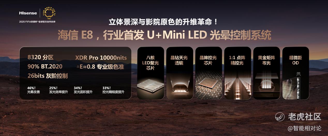 为了打造极致的光影视觉体验,海信在对待背光光晕问题上拒绝“一刀切”式做法,采用了“去伪存真”策略,推出全新U+Mini LED光晕控制系统,带来至高8320超高分区+XDR Pro 10000nits超高峰值亮度,让画面中的黑夜细节层次分明而非一片漆黑,白天的太阳光彩自然无光晕,视觉体验方面实现全面领先。