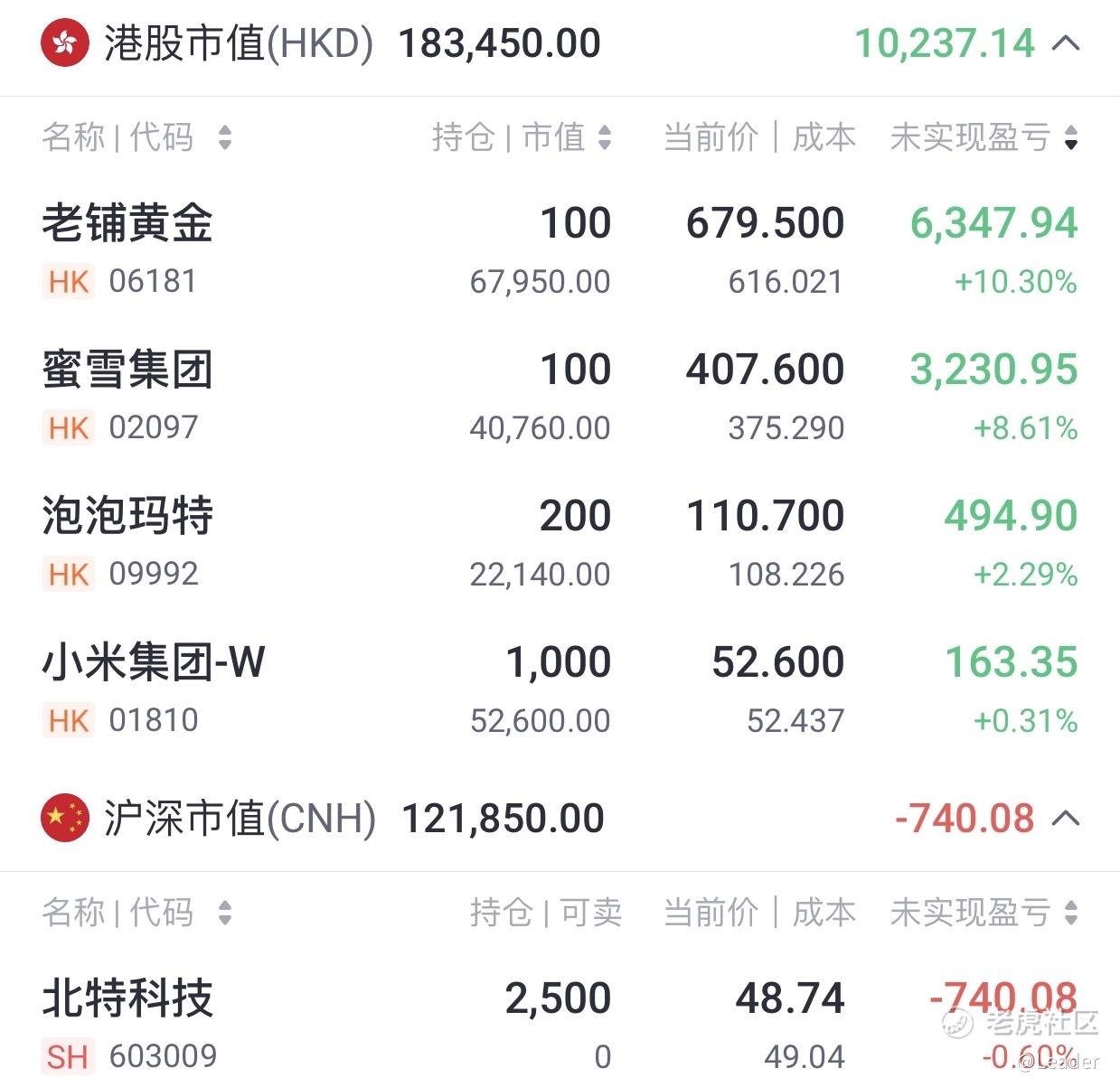$老铺黄金(06181)$ $泡泡玛特(09992)$ $小米集团-W(01810)$ $蜜雪集团(02097)$ $北特科技(603009)$