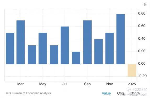 1月个人消费者支出环比下降0.2%,是2021年以来的最大跌幅。要知道消费占美国GDP比重大70%,这是一个非常糟糕的信号。