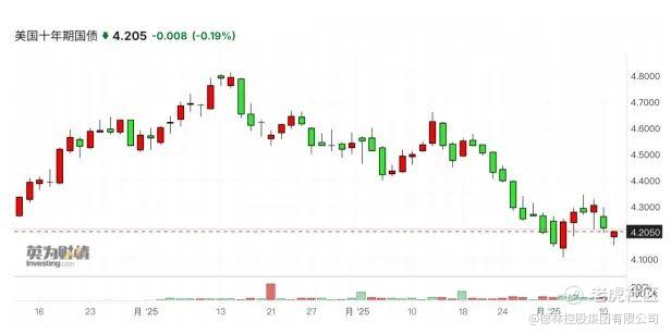 3.特朗普目标初达成:美国一季度经济增速可能为负,所有顶级投行集体下调美国2025年经济增速,资金从股市流入债市避险,十年期国债收益率持续下滑。