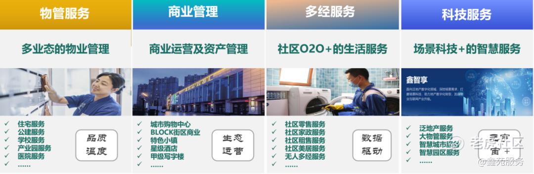 鑫苑服务的创新实践不仅限于社区内部,更致力于推动行业整体升级。鑫苑服务以住宅业态物业管理为基础,向跨业态及多业务服务空间延伸,形成了物管服务、商业管理、多经服务及科技服务的四大业务板块,并精研鑫服务体系,为各业态提供定制化的服务方案,让客户感受有温度的智慧服务体验。