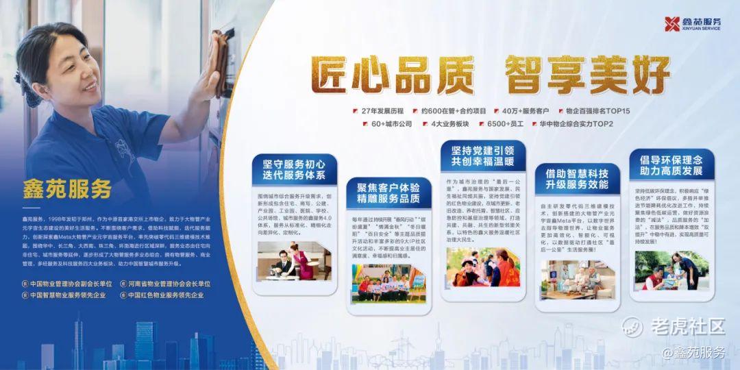 鑫苑服务,1998年发轫于郑州,是中原首家在港交所上市的物企、中国物业管理协会副会长单位,河南省物业管理协会会长单位,拥有国家一级物业管理企业资质。深耕物业管理27载,鑫苑服务始终坚持服务初心,不断迭代服务力,完成了标准化、特色化、品牌化、科技化、资本化的发展升级,如今进入了大物管产业元宇宙的数字化发展阶段。