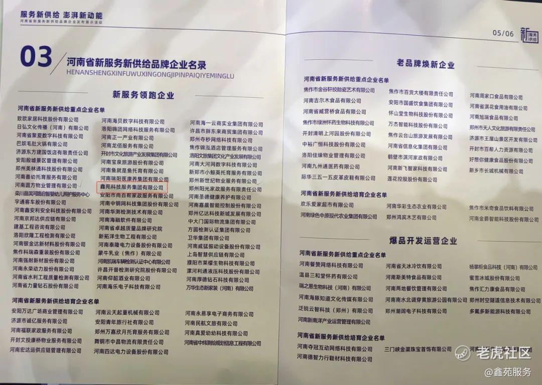 并宣布和展播了“新服务领跑企业”名单,鑫苑服务凭借27年优质服务和大物管产业实践,荣登“河南省新服务新供给重点企业”名单。