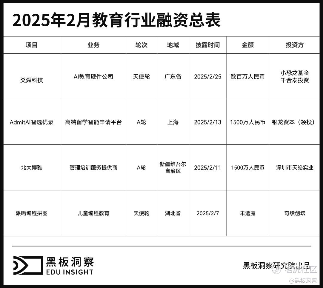 2月教育行业融资报告:融资3300万,细分领域崛起与资本布局-黑板洞察官网