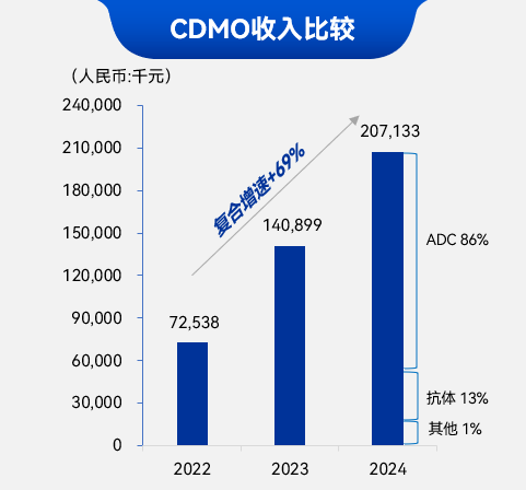 •全年CDMO/CMO收入人民币207,133千元,同比增长47%,其中ADC项目收入占比86%(含抗体生产)。