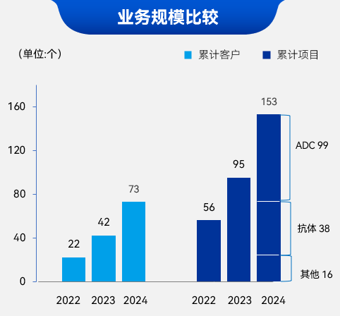 •公司凭借前沿的技术平台,加强项目前端引流能力。全年新增项目58个,其中48个为ADC项目。