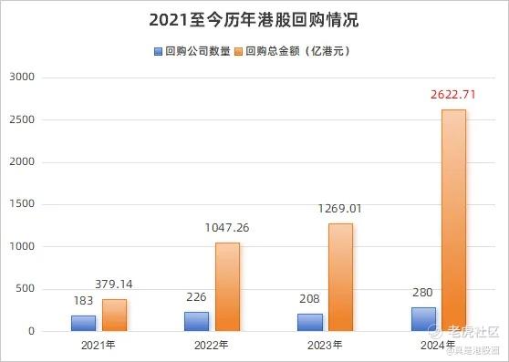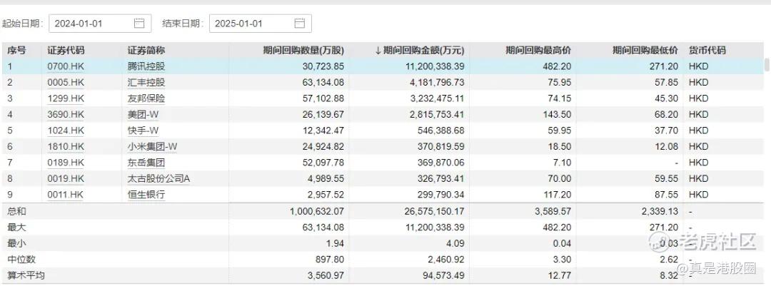 港股2024年回购了2622亿,比A股还多,其次港股回购只能用于注销,而A股有一半是股权激励式假回购,不注销,所以港股真实回购金额远大于A股。另外,港股的2024总市值为35万亿元,不到A股一半。就回购一项,港股就是A股力度的四倍以上。