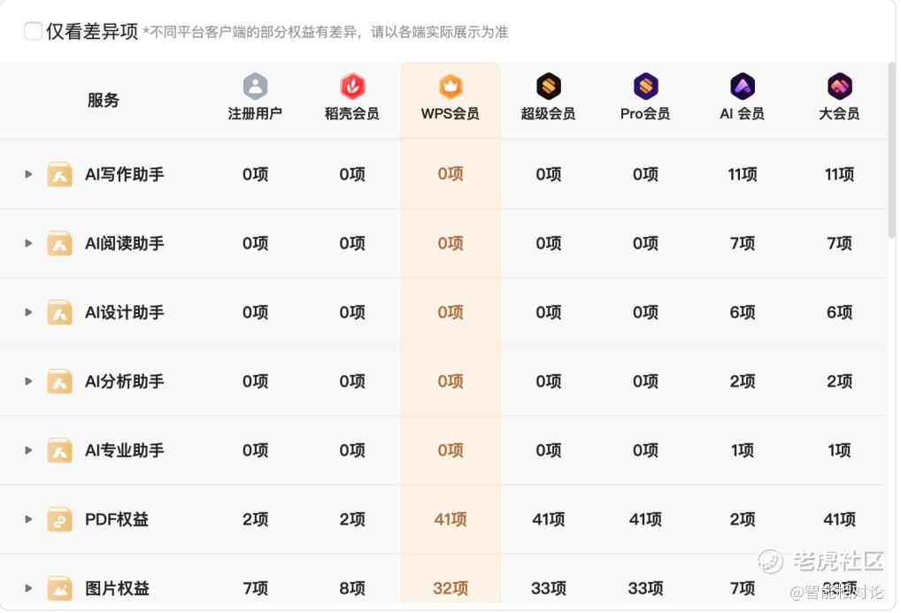 WPS的会员权益对比