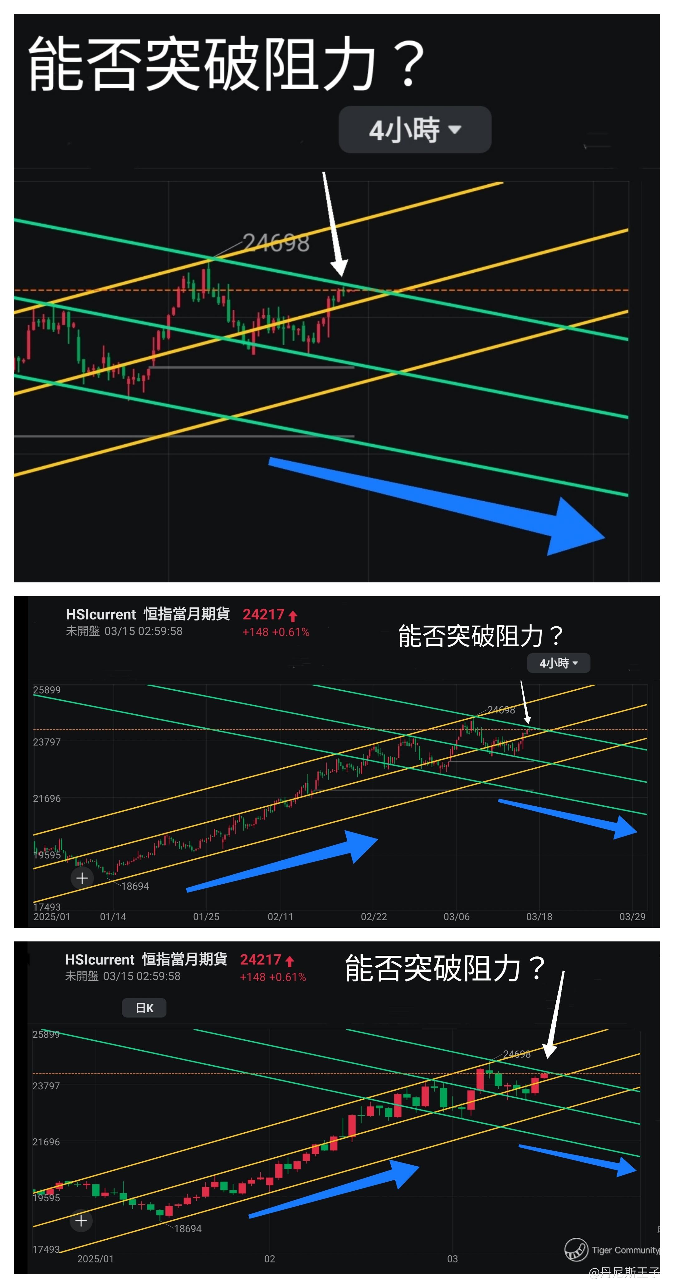 恒生指数/恒指当月期货4小时/日线图通道线: