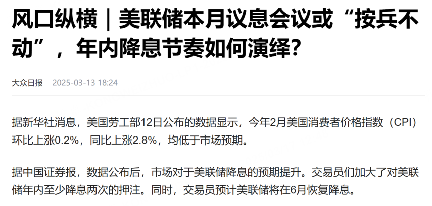 北京时间周四晚凌晨2:00将是3月美联储议息会议,每逢季度会议均受市场高度关注。由于此前对美联储降息预期比较悲观(年内降息两次),因此议息会议后的新闻发布会讲话不够鹰派的话,市场或许会变得乐观一些,从而带动指数继续反弹。所以本周股指走势可能会在周三前后因美联储的态度而出现变化,如周一二反弹较高,则周三大家就要相对注意是否出现反弹高点,毕竟当下市场恐慌指数(VIX)相对高,二次探底也是稀松平常的事。