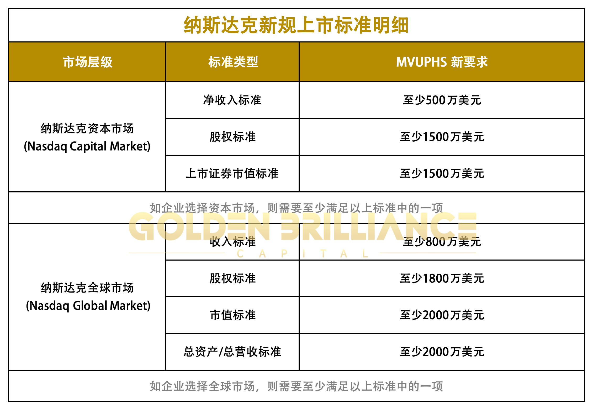 纳斯达克此次提升上市标准的举措,虽然在短期内给中小企业带来了诸多挑战,但立足于资本市场漫长的发展道路,这无疑是一场具有深远意义的结构性变革。GBC长期以来深耕于美国资本市场,不仅锻造了一支专业的辅导团队,还积累了丰富的承销资源。在企业赴美上市的征程中,我们将全方位陪伴企业,深入了解企业需求,打造量身定制的发行方案,全力助推企业以最高效、最精准的方式登陆美国资本市场。