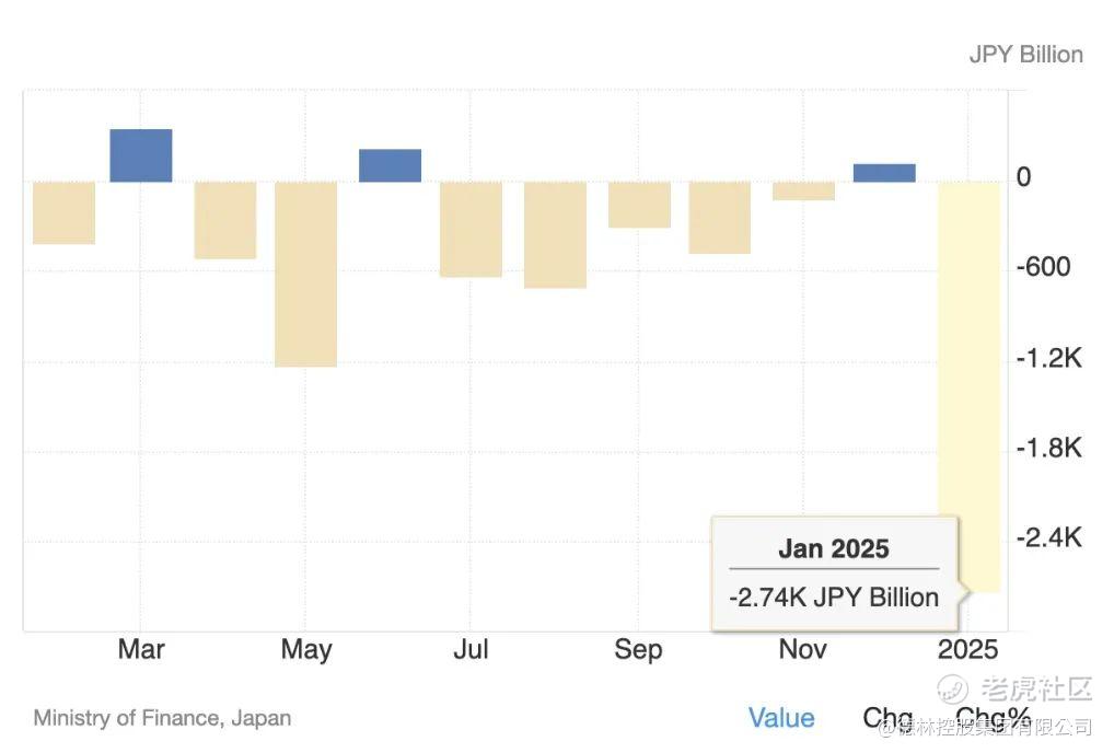 第一,日本作为全球制造业和出口大国,竟然连续三年贸易逆差,2025年1月逆差达到2.74万亿日元,创2023年1月以来新高。