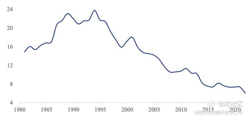 图14:日本制造业占全球比重%,来源:德林新经济研究院