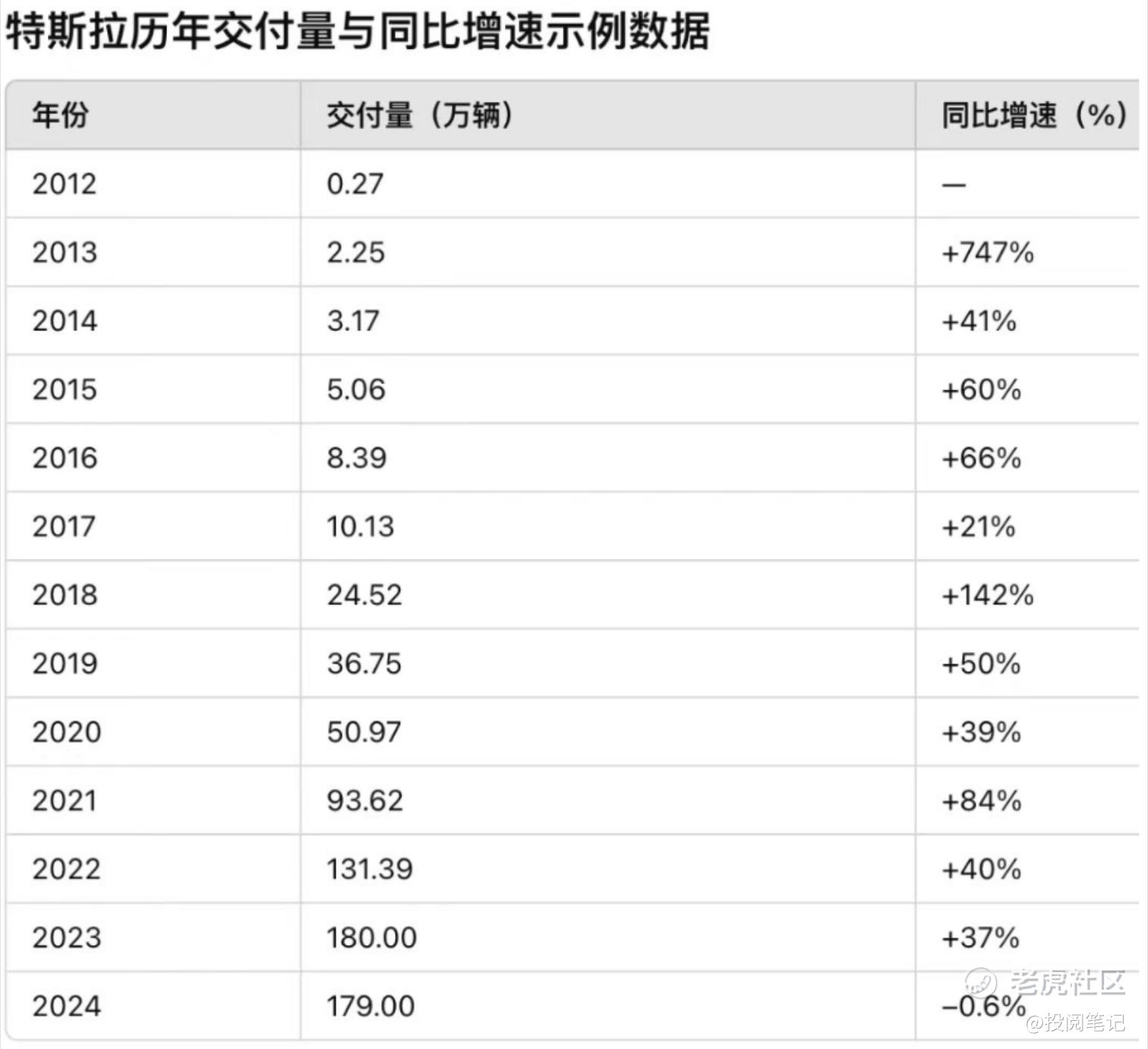 2024年全年,特斯拉共交付178.9万辆新车,相较于2023年(180.86万辆)同比-1.1%,这也是特斯拉新车销售十年来首次下跌,如下图所示。