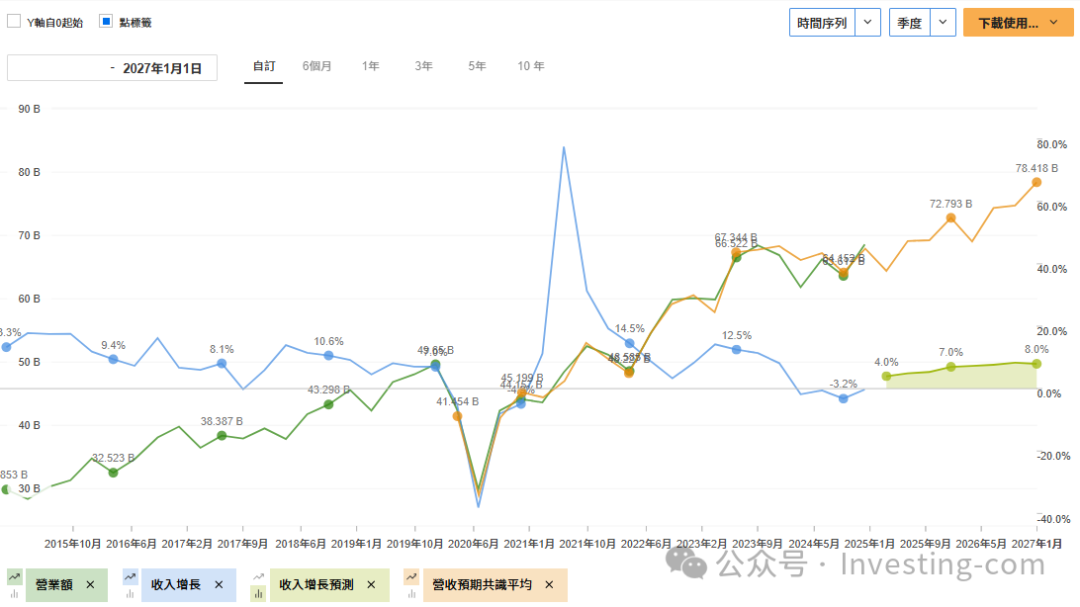 根据InvestingPro数据,星巴克的营收增速将在未来两年持续攀升,从4.0%上升至8.0%。