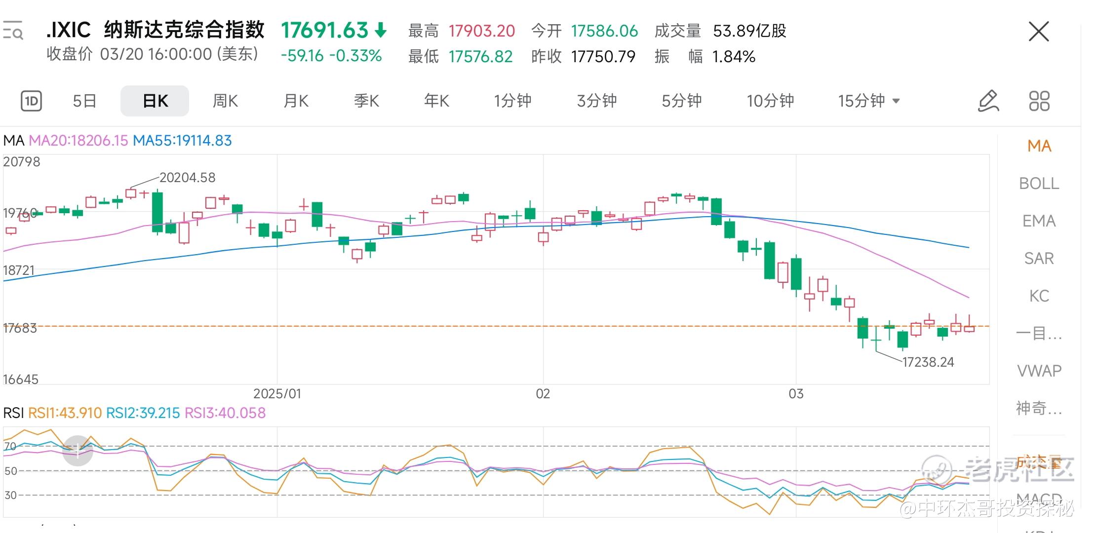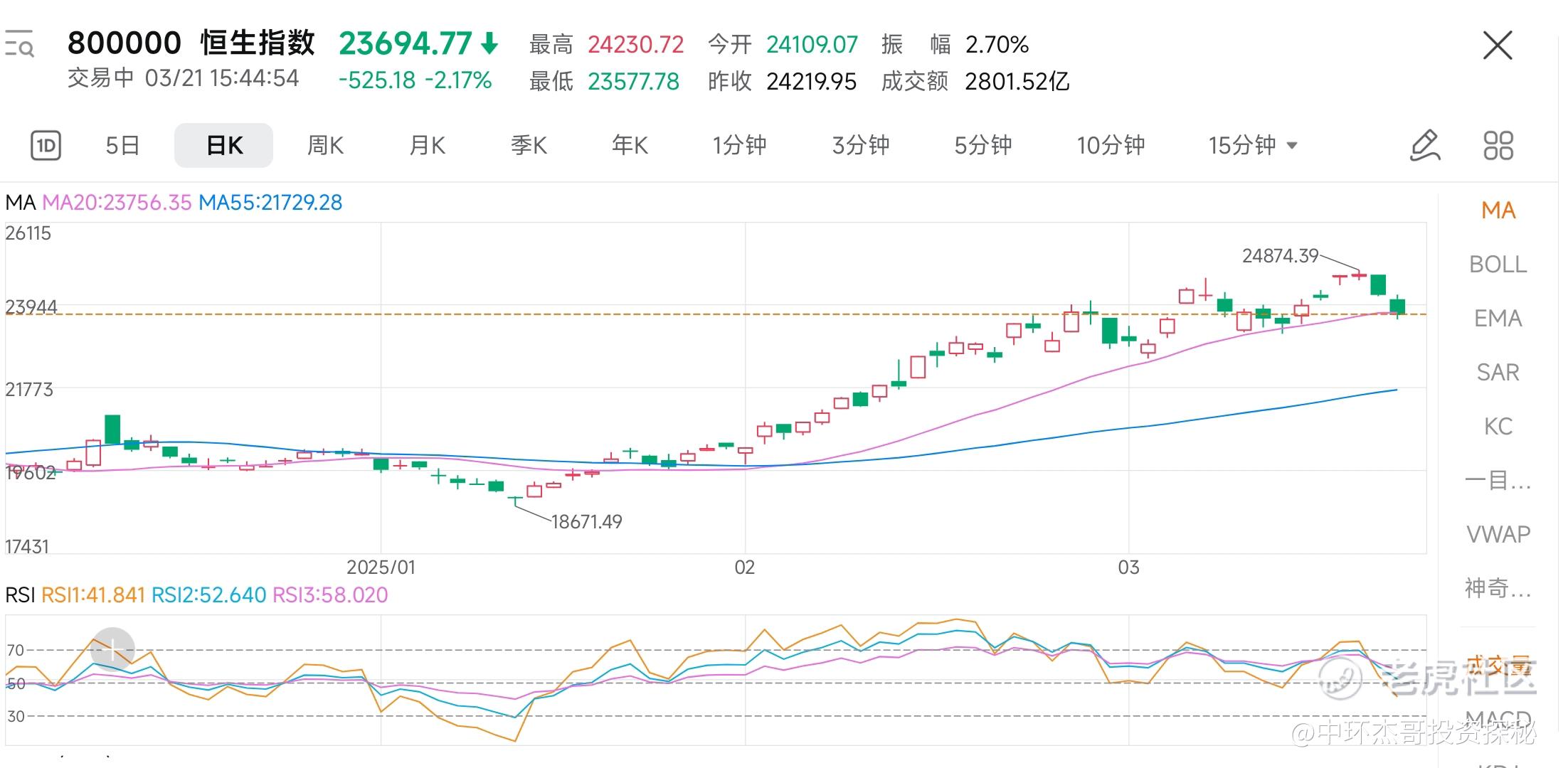 恒生指数,连续两天大跌,恒科三天的大跌。相信有港股标的的都会比较难受。那么应该怎么操作呢?说实话,没有完美的方案,而且都是很艰难的决定。但是,做投资,这是必须要面对的。想随随便便躲过大跌是不现实的。比较理性的操作:首先就是,要有硬阻断,个股从高位跌15-20%就要止盈或者止损了,不可能完全做对,甚至可能做错,但是,能避免最坏结果,也能排除小的波动。其次,就是20日线的辅助,三个交易日不能回收20日线,就需要规避一下风险。和上一条是类似的概率问题。