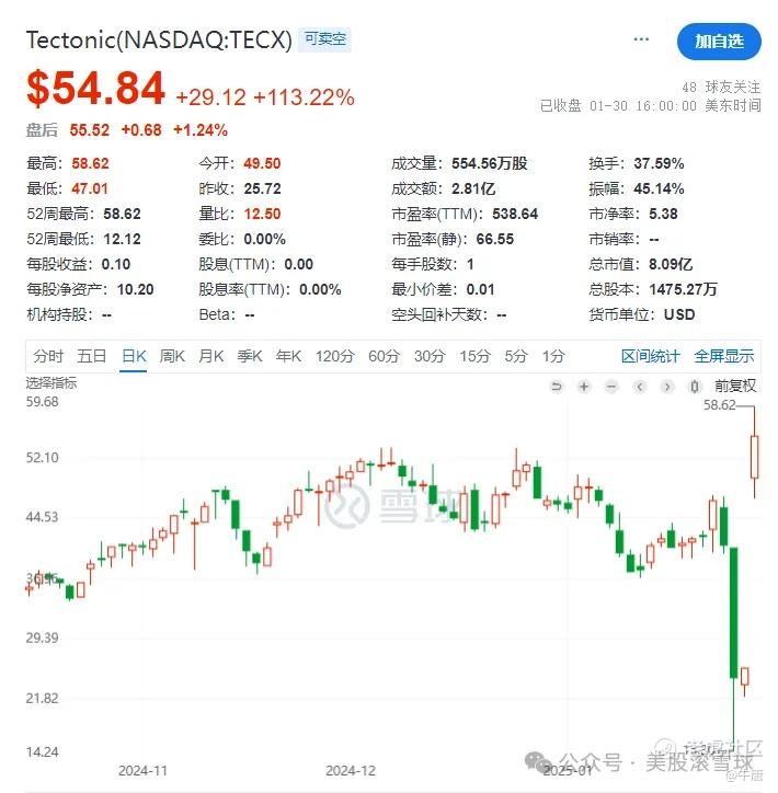 1月30日,美股上市的生物医药公司Tectonic Therapeutic暴涨113.22%,市值达到8.1亿美元,达到上市以来的市值巅峰。