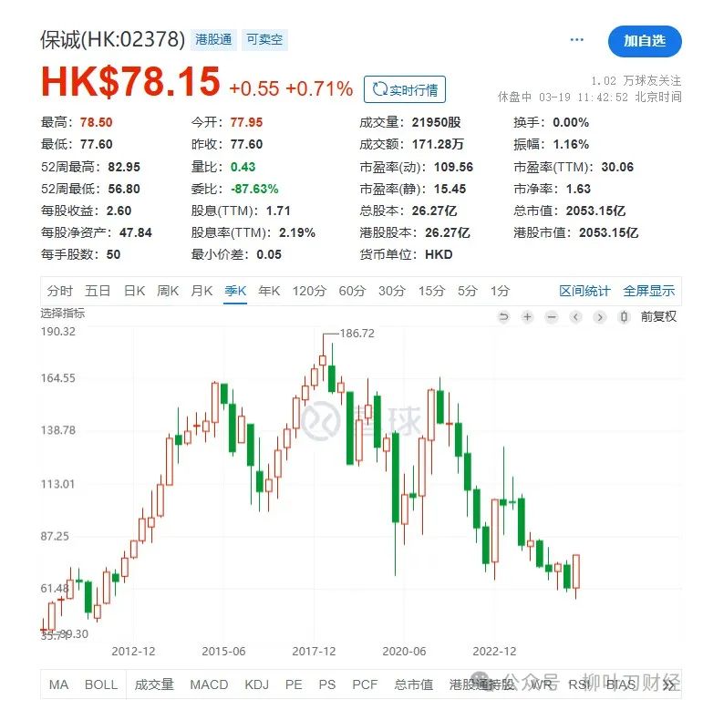 以香港保险上市公司保诚为例子,大家也可以先看看这个公司的走势: