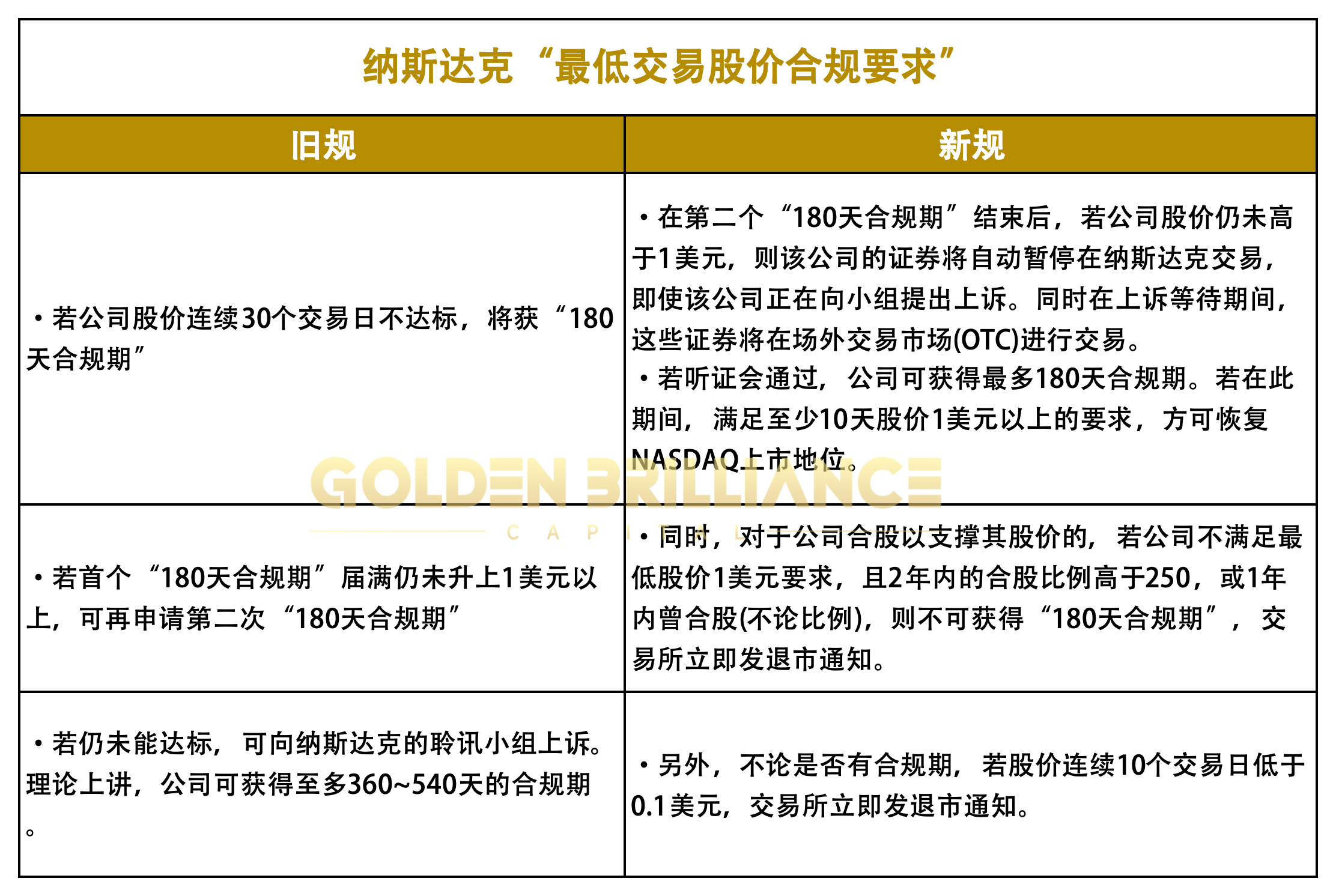 此前,企业可通过两次180天的合规期(总计360天)尝试恢复股价,并能在上诉期间继续交易。