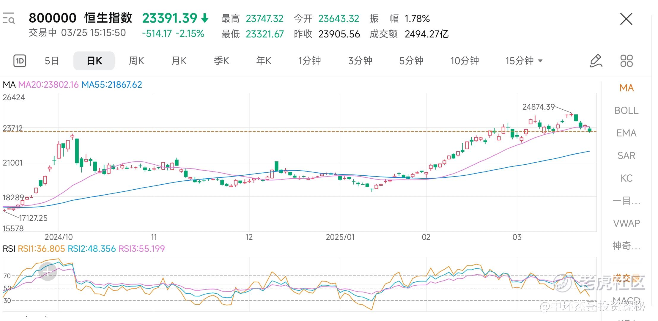 恒生指数,连续大跌,然后探底反弹,走势还是不错的,但是,随后就是大跌,再次扭转局面,而且是两阴加一阳的走势,走势比较差。结合目前的高位。选择并不好做,因此,正如盘中所言,逢高减仓位,让自己处于一种更安全的状态会更稳妥,也更灵活一些。