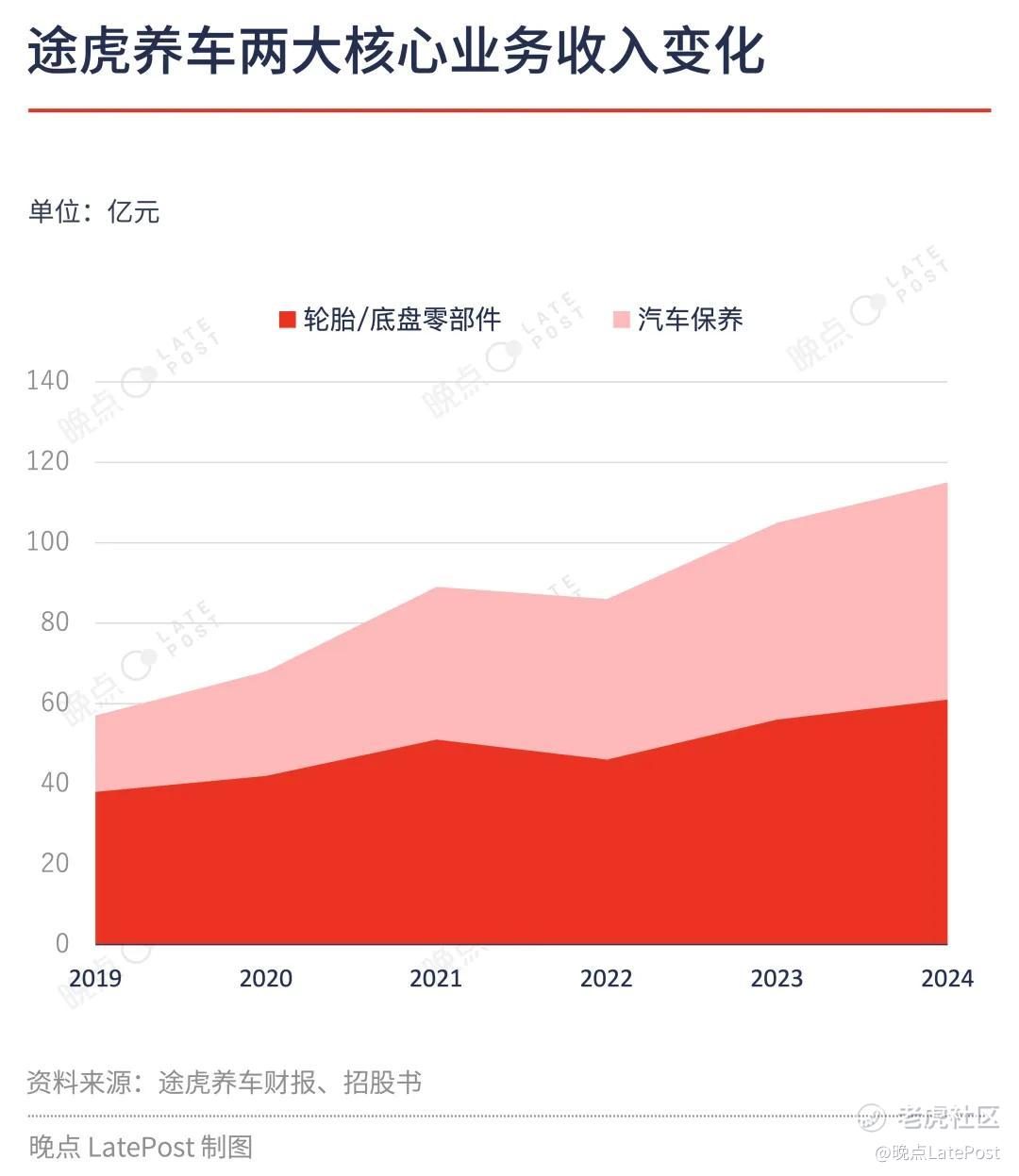 几年的发展,让途虎在汽后市场,形成了自己独特的模式:通过精简、整合上游供应链,为 C 端消费者提供更具性价比、多样化的产品和服务。如今,已覆盖从轮胎到底盘零部件更换,到汽车保养、维修、美容等领域,形成了 “轮胎 + 保养” 两大核心收入引擎。