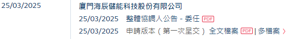 2025年3月25日,厦门海辰储能科技股份有限公司 Xiamen Hithium Energy Storage Technology Co., Ltd.(下称"海辰储能”)在港交所递交招股书,拟在香港主板上市。
