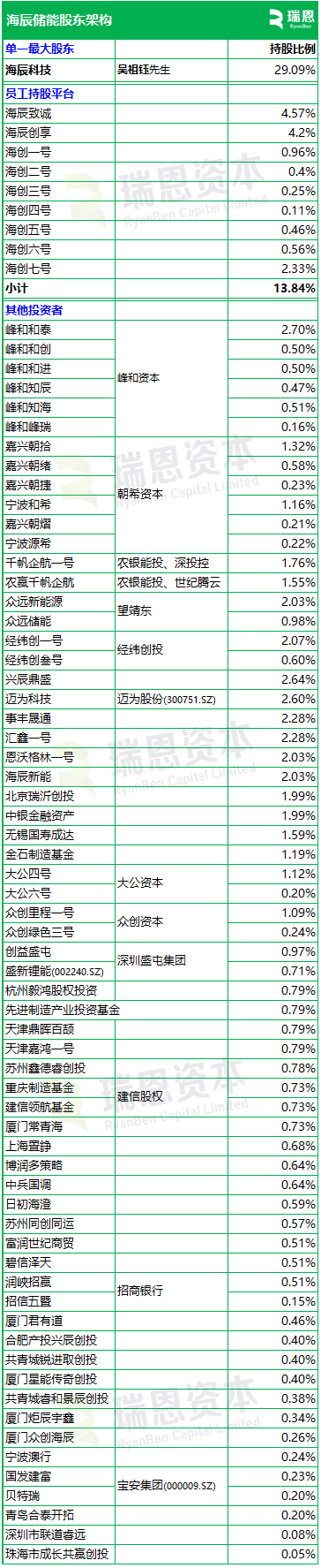 招股书显示,海辰储能在香港上市前的股东架构中,