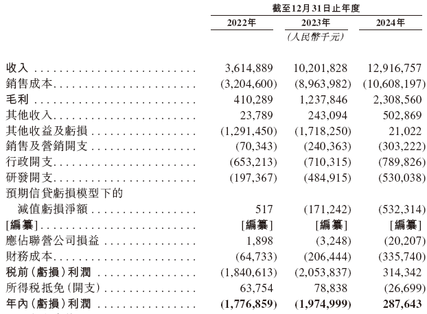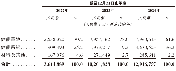 招股书显示,在过去的2022年、2023年、2024年,海辰储能的营业收入分别人民币36.15亿、102.02亿和129.17亿元,相应的净利润分别为人民币-17.77亿、-19.75亿和2.88亿元,相应的经调整净利润分别为人民币-1.05亿、-2.25亿和3.18亿元。