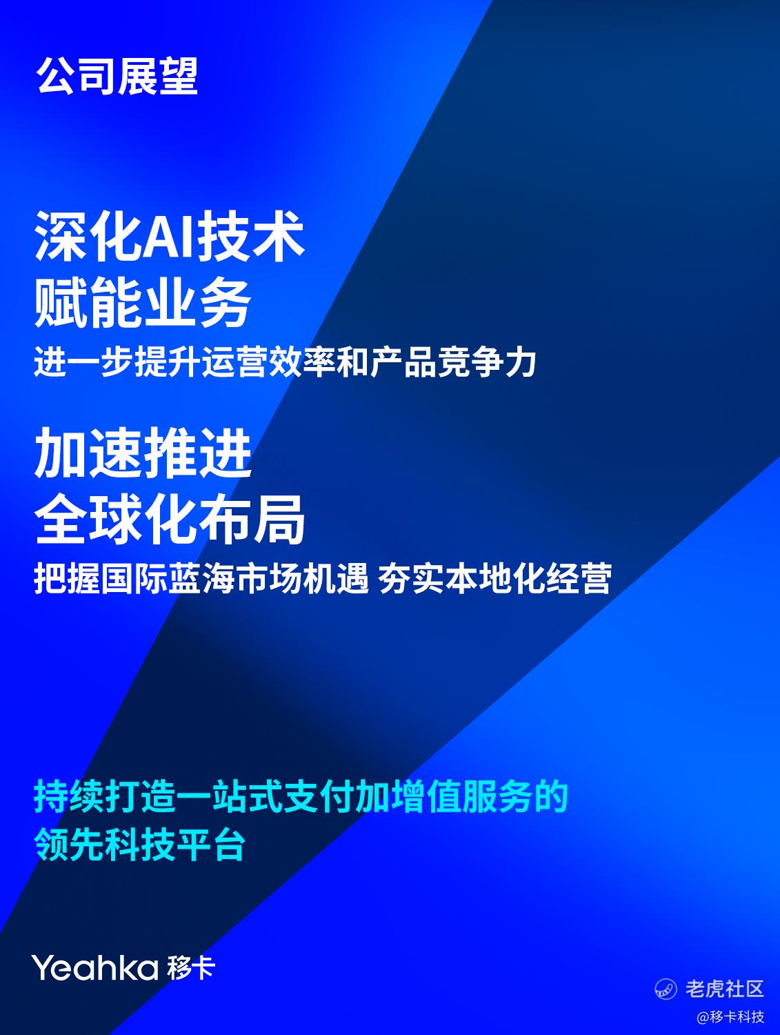 展望未来,移卡将继续深化AI技术对业务的赋能作用,同时继续推进业务多元化与全球化战略布局,以创新驱动公司持续高质量增长。