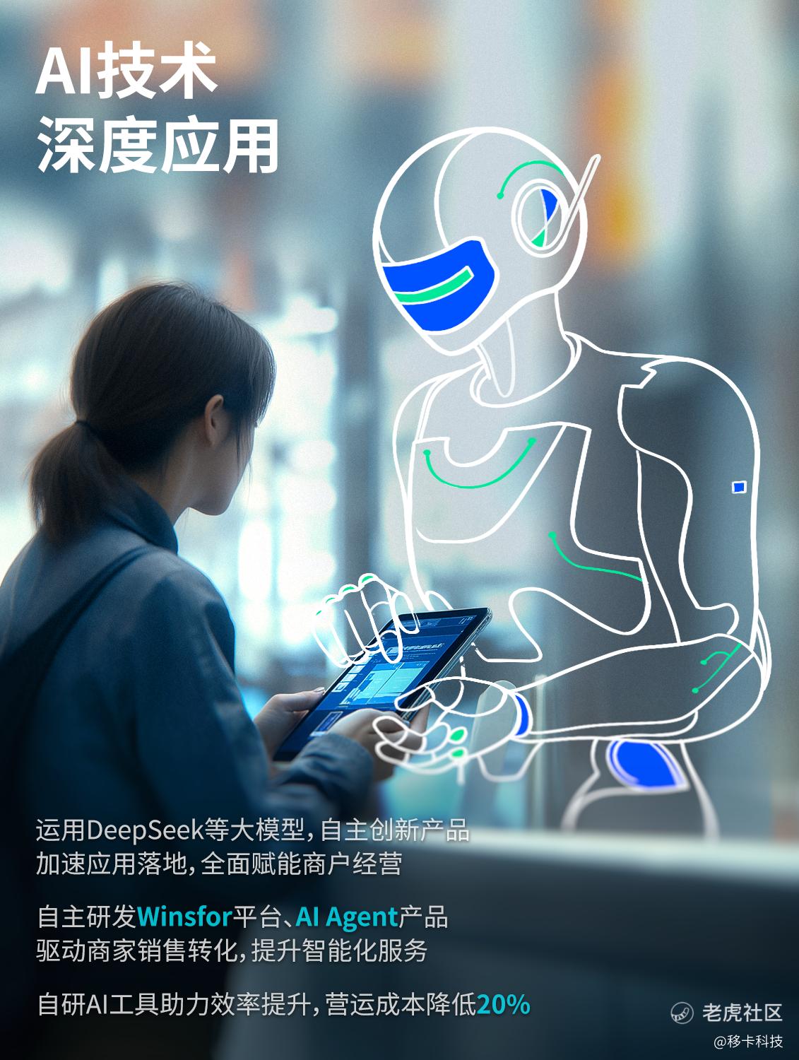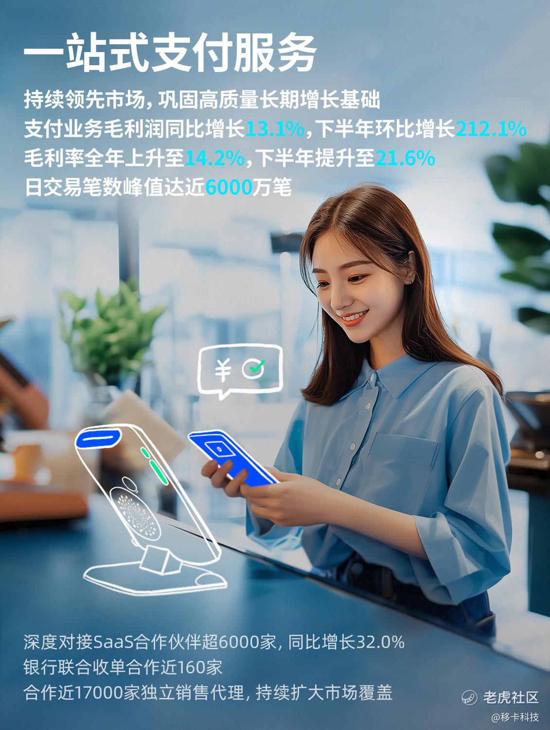 作为一家基于支付的领先科技平台,移卡专注为商户和消费者创造价值。2024年,移卡深度应用AI技术,自主研发一系列契合业务的产品,全面赋能商户经营;全球化业务加速布局,一站式支付业务、商户解决方案业务、到店电商业务均已在海外有序开展,卓有成效。