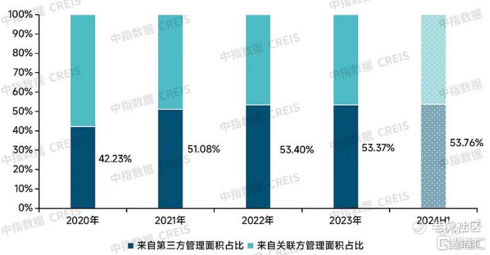 根据此前数据来看,截止2024年上半年,上市物业企业来自第三方管理面积占比53.76%,较2023年全年上升0.39个百分点。
