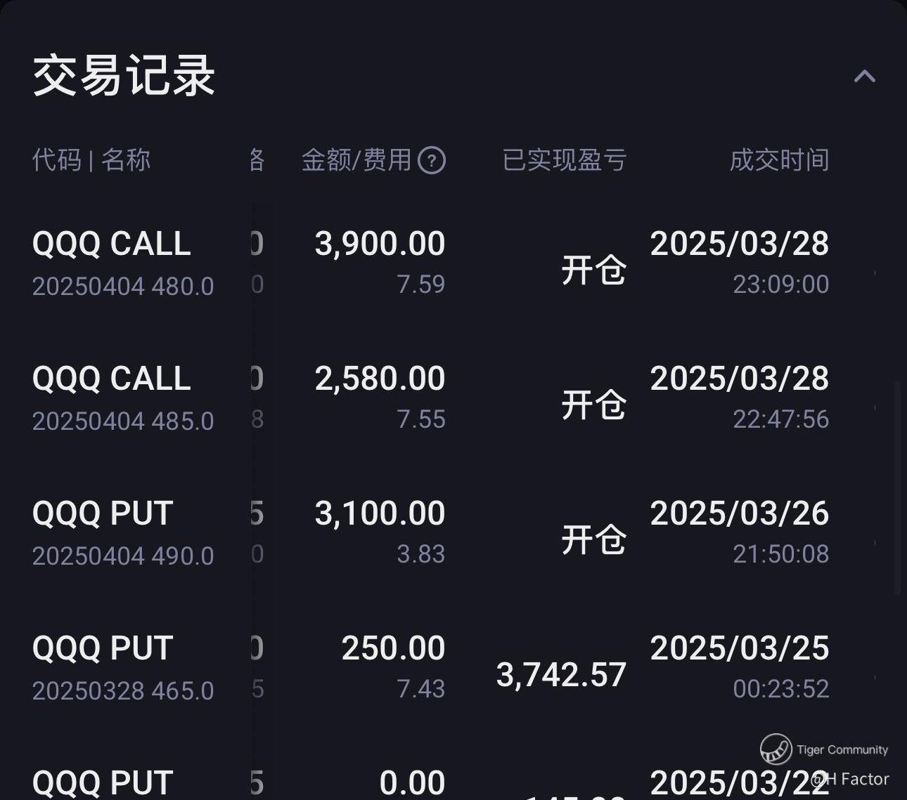 上周特朗普关税态度放软,欧洲对等关税进一步推迟到4月底,周一股市应声大涨,但周一晚我还无法判断涨势是否坚定,没有成交任何单。周二早上复盘,无论是涨幅还是成交量,都很坚定向好,于是调整策略,挂单牛市看涨,但是实际开盘后情况并不妙,所以我还是继续双卖,这从我的实盘分享上可以看到。周三特朗普的强硬关税表态,盘前就大跌,预言精准发生,开心地全部挂了SP订单,但我低估了跌幅,SP挂单价格过早成交,目前浮亏中。