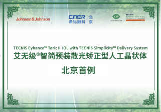 近日,北京首例强生眼力健艾无级®智简预装散光矫正型人工晶状体植入手术在北京希玛林顺潮眼科医院成功开展。此次手术的患者是一位75岁高龄的老人,术后老人视力得到显著提升,远、中、近视力分别达到1.0/ 0.8 /0.63。