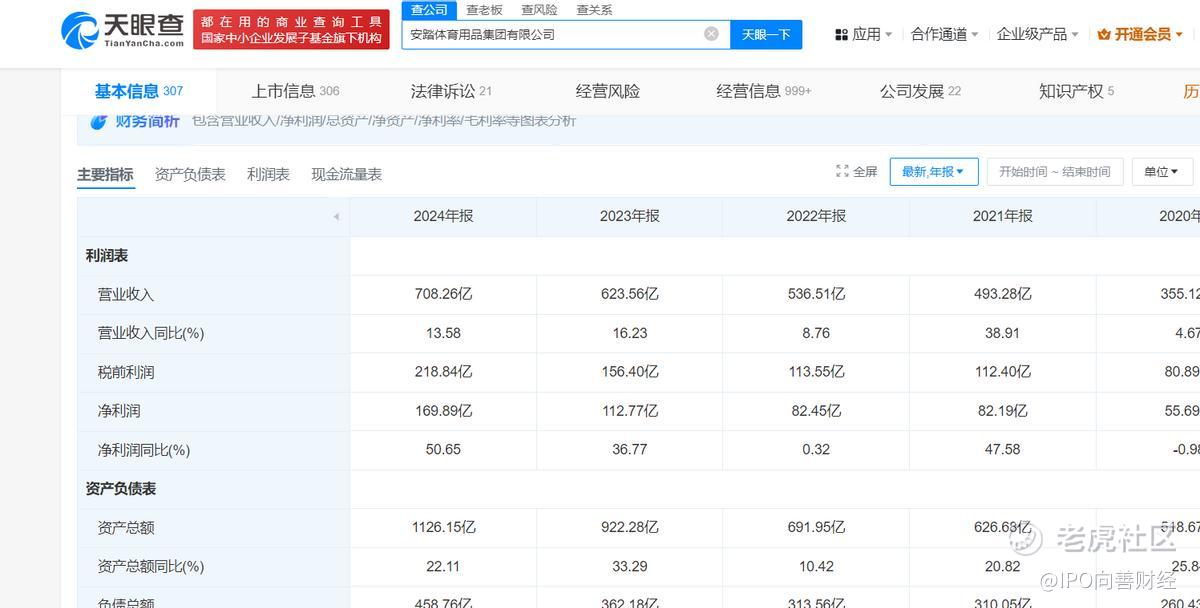 过去一年,安踏集团实现营收708.26亿元,同比增长13.6%。如果再加上表外的亚玛芬体育,“安踏系”全年总营收便突破了千亿元规模。