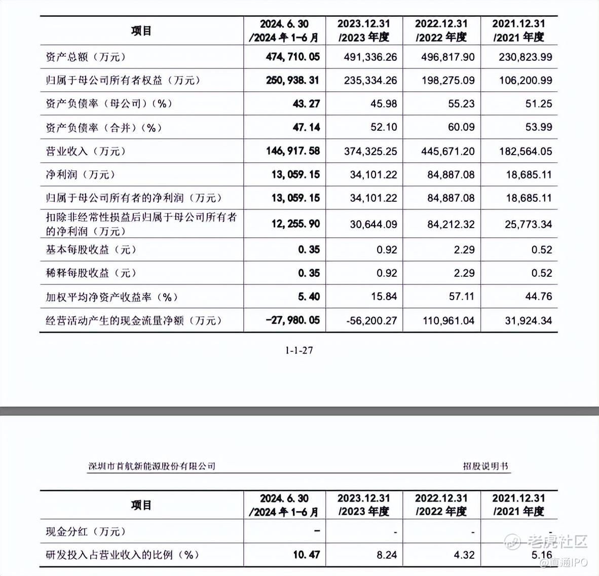 招股书显示,首航新能预测2024年度营业收入约27.13亿元,归母净利润约2.55亿元,扣非净利润约2.36亿元。 23,586.37 万元。公司盈利预测是管理层在最佳估计 假设的基础上编制的,但所依据的各种假设具有不确定性,投资者进行投资决 策时应谨慎使用。