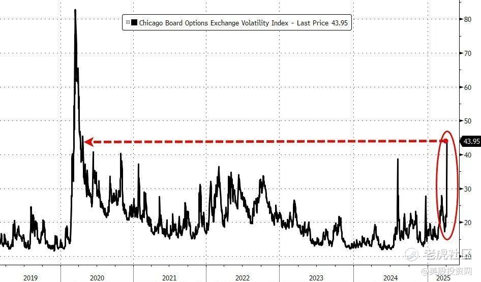 纳指跌962.82点,跌幅为5.82%,报15587.79点;标普500指数跌322.44点,跌幅为5.97%,报5074.08点。道指跌2231.07点,跌幅为5.50%,报38314.86点;