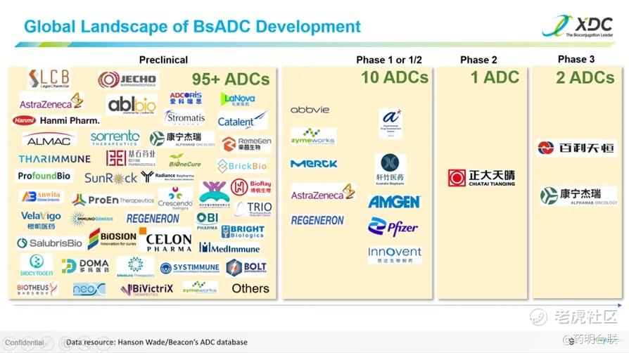 观点4:全球BsADC最高阶段已达临床三期,靶点和载荷呈现多样化组合