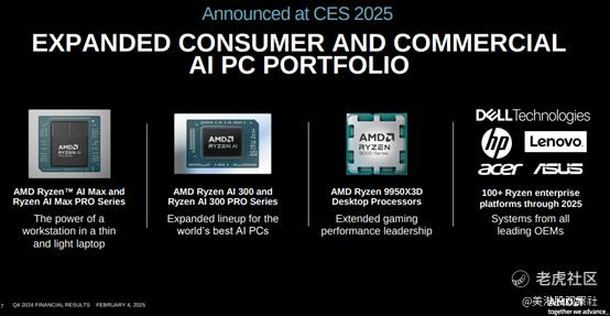 AMD 不一定需要在 AI 芯片领域完全取胜。它只是必须成为首选方案 ,而且它完全有能力做到这一点。AMD 的 AI 解决方案涵盖高端数据中心、主流 PC 和边缘计算设备,具有多样性,因此它正在调整其 AI 方法,以应对商品化、高增长的业务,因为没有一种单一的解决方案可以满足所有需求。其 Instinct GPU 在云端与 Nvidia 展开了真正的竞争,尤其是在内存带宽和每次推理的价格方面。其 Ryzen AI CPU 将 AI 引入 PC,微软及其合作伙伴步调一致。