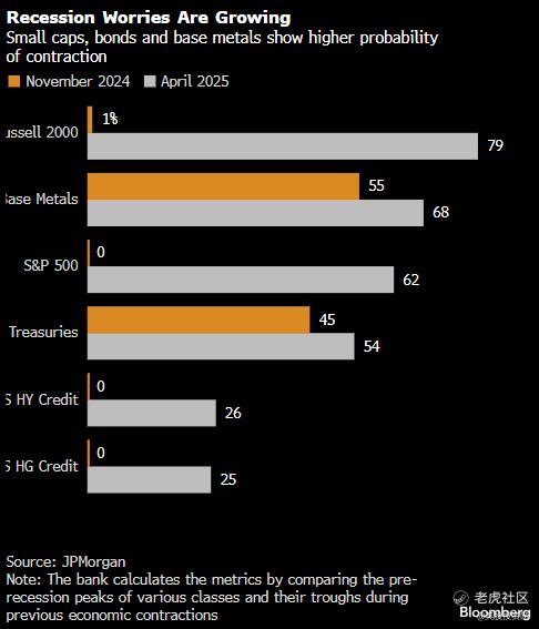 不仅仅是罗素2000。摩根大通的数据显示,标普500指数当前所反映的经济衰退概率也达到了62%;大宗商品方面,基本金属市场的指标显示衰退概率为68%;而被视为市场避风港的5年期美国国债,其收益率暗示的经济下行可能性则为54%。换句话说,跨资产类别的市场行为已在同步释放警告信号。